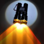 The Double Barrel Blood Tracker Zoom® is turned on and off by pressing the orange buttons located at the end of each side. There are three modes. Turning the unit off and back on will cycle the light to the next mode. These modes in the order that they occur are: